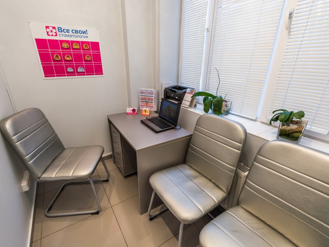 В клинике Все свои на м. Орехово лечила зубы своему 5,5 летнему сыну. У ребёнка невооруженным глазом был виден множественный кариес и даже с пульпитом. Ребенок очень чувствителен и болезненно переносит боль. Он вырывался, крутился, хоть и с обезбаливанием, это осложняло лечение. Тем не менее, благодаря опыту, мастерству и умению найти подход к ребёнку детскому врачу удалось залечить нам четыре зуба. Особенно впечатлила ассистент, которая оказала поддержку и беседу с ребенком, благодаря ей сын смог найти в себе силы довести лечение зубов до конца. Надеемся успешно долечить оставшиеся зубы. Цены не высокие (перед визитом изучила все близлежащие мед учреждения), есть детский уголок, и если приходишь пораньше, ребенок успевает порисовать попить чаю.